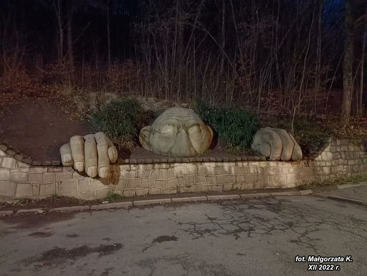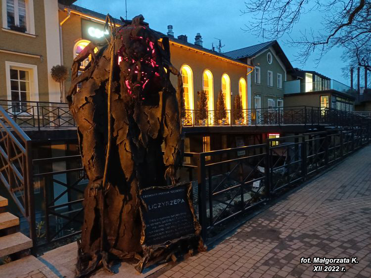 Przeszliśmy się uliczkami, zajrzeliśmy do "Ogrodu muzycznego" w Parku Zdrojowym i złapaliśmy pierwszego kesza w tej okolicy "Duch Góry Parkowej". Stwór ten zwany też bywa "Leśnym Ludem".